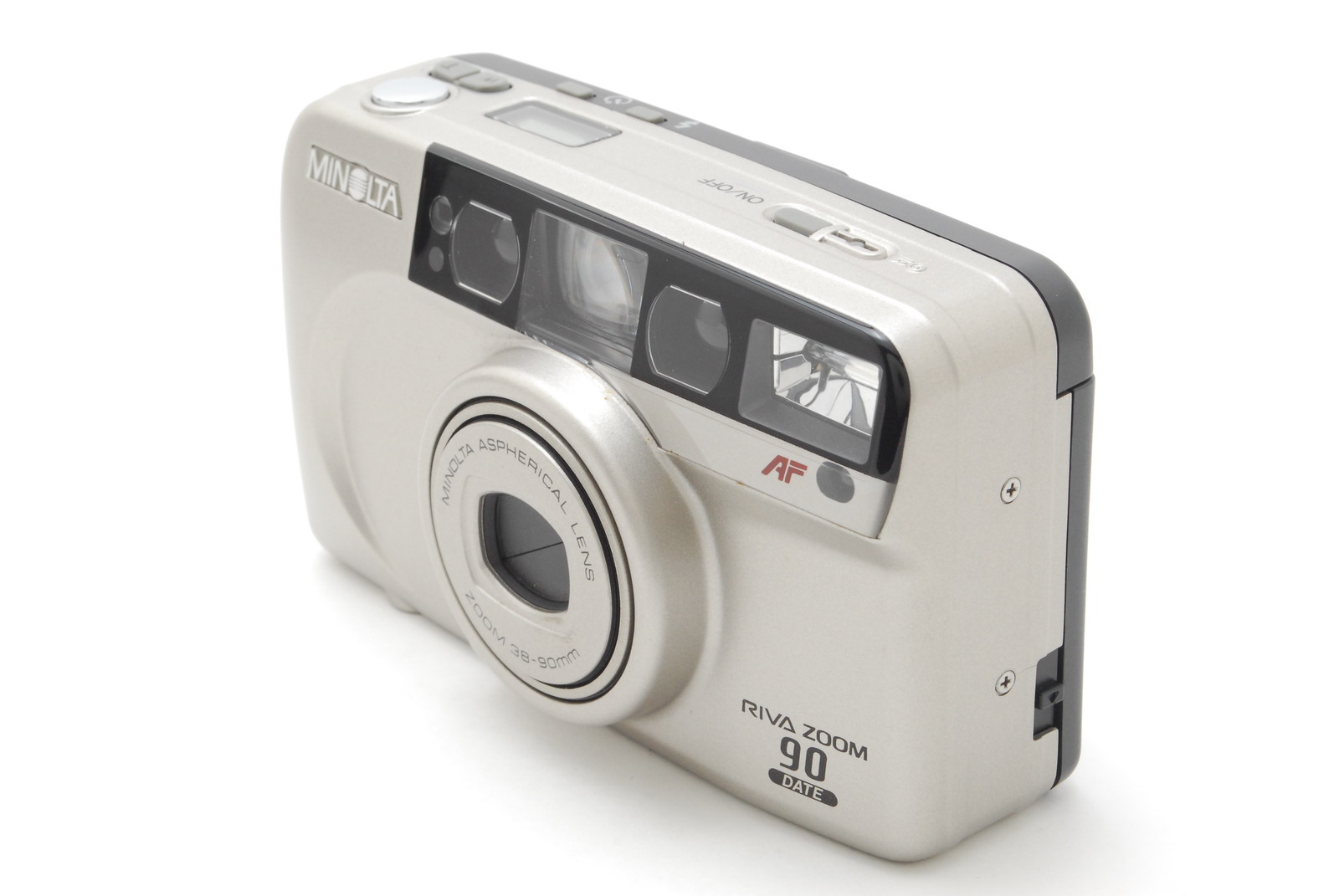 EXC+5 Minolta RIVA ZOOM 90 DATE 35mm Film Point and Shoot Camera from Japan Câmera Minolta RIVA ZOOM 90 DATE 35mm Point and Shoot, fabricada no Japão, em excelente estado de conservação (EXC+5).